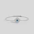 This beautifully crafted bracelet showcases a graceful four-petal clover wrapped around a contemporary evil-eye motif, blending symbolism with modern luxury. The turquoise center radiates calming energy, while the halo of White Cubic Zirconia sparkles with a diamond-like brilliance every time your wrist moves. Its smooth, lightweight, and polished design makes it perfect for all-day comfort and everyday wear.