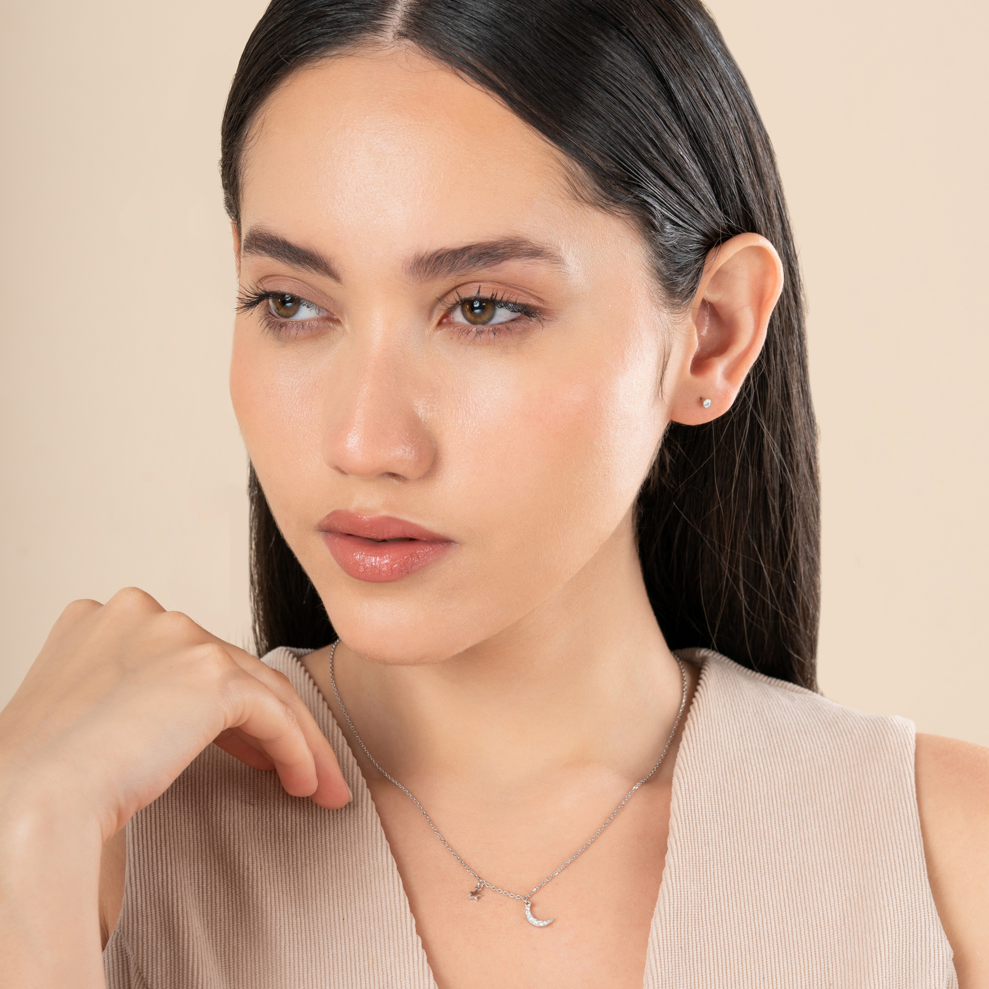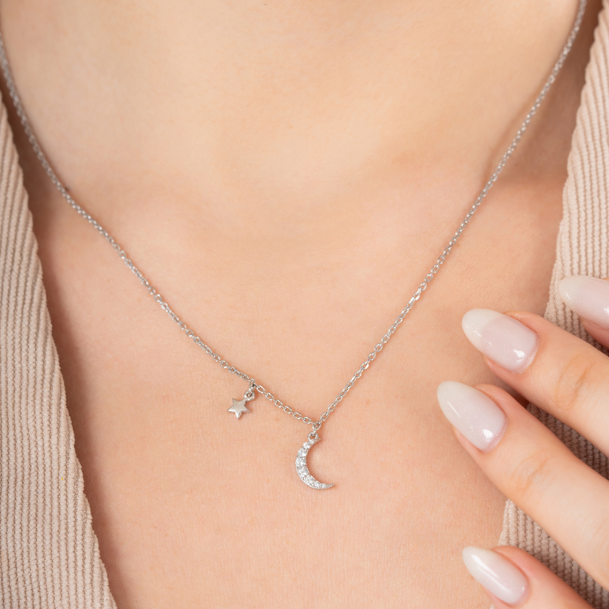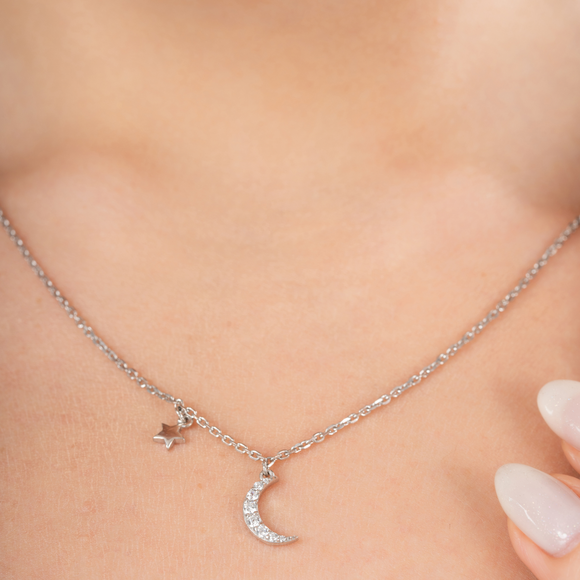 Whether you're dressing for a special moment or adding a touch of radiance to your everyday look, the Celestial Moonbeam Charm Necklace offers effortless elegance and ethereal charm.